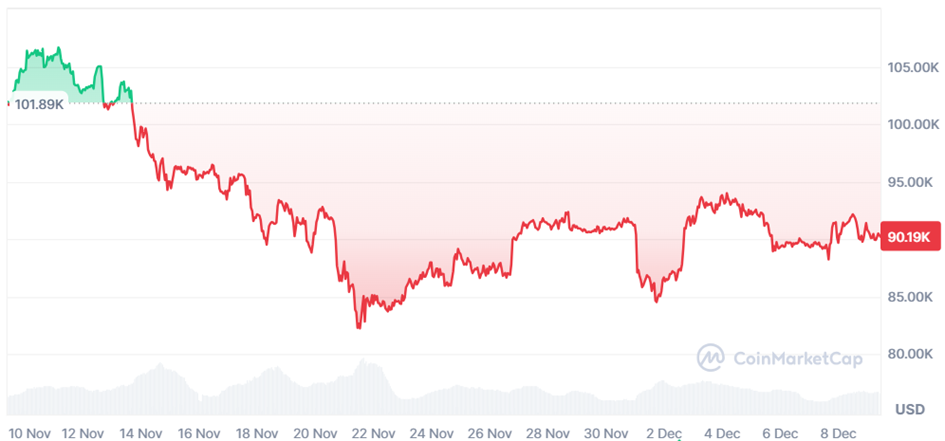 Für den Bitcoin ging es in den vergangenen Tagen leicht aufwärts, wodurch ein größerer Sturz vorerst vermieden wird. Blickt man auf das Chart des Bitcoins, dann ist eindeutig festzustellen, dass sich der Altcoin in den vergangenen tagen oberhalb der wichtigen Kursmarke von 90.000 US-Dollar stabilisiert. Innerhalb der vergangenen sieben tage kommt die größte Kryptowährung damit auf eine positive Entwicklung von rund 4,5 Prozent, gefolgt von einer negativen Entwicklung in Höhe von 11,5 Prozent binnen eines Monats.