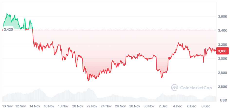 Für die zweitgrößte Kryptowährung im Kryptomarkt verliefen die vergangenen Wochen deutlich besser, denn innerhalb von einer Woche kommt der ETH-Token auf einen Kursgewinn von mehr als 12 Prozent. Direkt daran schließt sich allerdings auch ein Verlust von rund 8,5 Prozent im Kurs innerhalb von einem Monat an, was allerdings zunehmend abnimmt. Wichtig an dieser Stelle ist anzufügen, dass Ethereum mittlerweile wieder stabil oberhalb der wichtigen Support-Zone rund um 3.000 US-Dollar steht, in Verbindung mit einer Marktkapitalisierung von knapp über 375 Milliarden US-Dollar.
