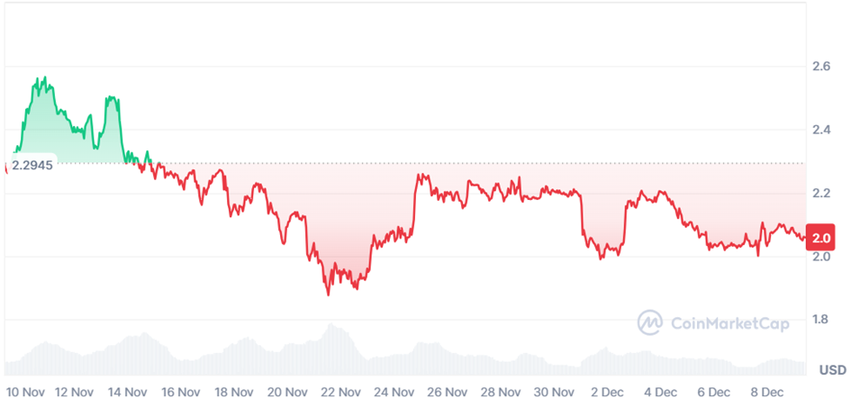 Auch für den XRP-Token geht es in den vergangenen Tagen leicht aufwärts, was dazu führt, dass sich der Altcoin knapp über der Marke von 2 US-Dollar stabilisiert. Mit Blick auf die Entwicklung der vergangenen sieben Tage steht der Altcoin bei einem leichten plus von rund 3 Prozent. Im Schnitt von einem Monat steht der XRP-Token allerdings noch immer bei einem Minus von 10 Prozent, in Verbindung mit einer Marktkapitalisierung von 125 Milliarden US-Dollar. Damit belegt der XRP-Token derzeit Platz 4 aller Kryptowährungen, gemessen an ihrer jeweiligen Marktkapitalisierung. Es könnte allerdings jederzeit deutlich in Richtung aufwärts gehen, in Verbindung mit der Genehmigung eines ersten Spot-ETFs in den USA, auf der Basis von Ripple.