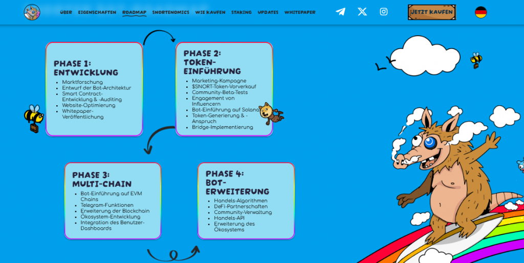 Langfristig ist ebenso geplant, den Bot mit dessen Handelsstrategien stetig zu optimieren und zu erweitern und damit für einen großen Mehrwert in der Community zu sorgen. Doch es ist eine gewisse Eile geboten, denn der Preis für einen Snorter-Token steigt in regelmäßigen Abständen bis zum Börsenlisting weiter an. Was auf der einen Seite für eine konstante Rendite sorgt, führt auf der anderen Seite dazu, dass man immer weniger der Meme-Coins über einen Euro erhält. Der Kauf selbst kann mittels weniger Schritte über die Projektwebsite abgewickelt werden.