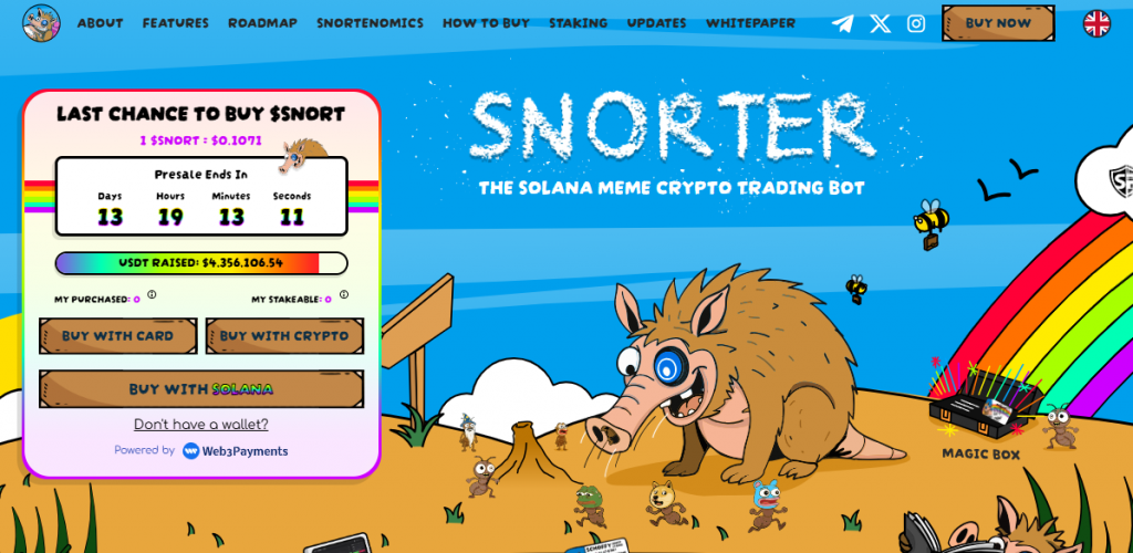 Für nicht wenige, die diesen Beitrag lesen, dürfte Snorter noch eine große Unbekannte sein, obwohl der junge Tokens in den letzten Wochen stark an Beliebtheit gewann. Vereinfacht ausgedrückt steckt hinter Snorter ein Projektteam, das es sich zur Aufgabe gemacht hat, das Trading mit Kryptowährungen zu revolutionieren, in Verbindung mit der Kraft der Szene rund um Meme-Coins. Im Vordergrund des Projektes steht ein Erdferkel als Meme-Figur, das den Namen Snorter trägt. Wer Erdferkel kennt, der weiß, wie hartnäckig sie bei der Suche nach Nahrung sind, besonders an schwierigen Orten unter der Erde.