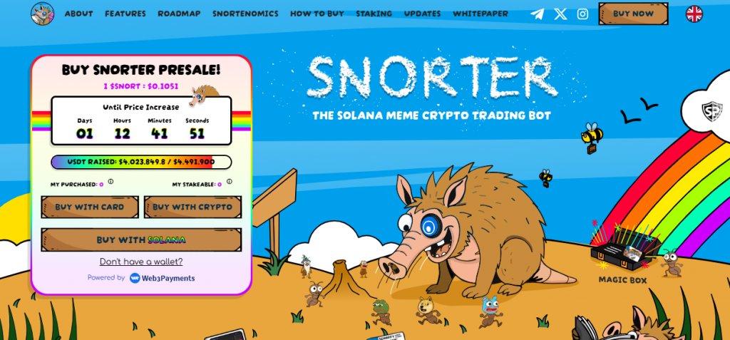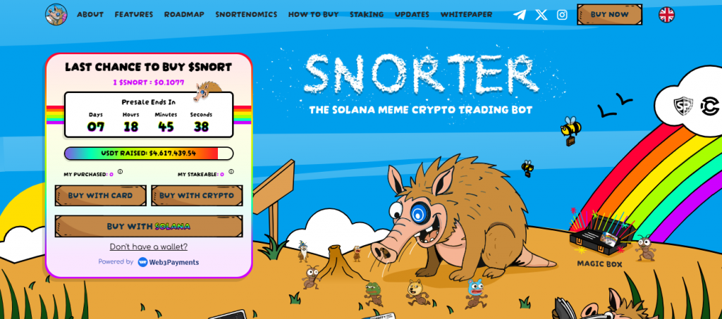 Für nicht wenige, die diesen Beitrag lesen, dürfte Snorter noch eine große Unbekannte sein, obwohl der junge Tokens in den letzten Wochen stark an Beliebtheit gewann. Vereinfacht ausgedrückt steckt hinter Snorter ein Projektteam, das es sich zur Aufgabe gemacht hat, das Trading mit Kryptowährungen zu revolutionieren, in Verbindung mit der Kraft der Szene rund um Meme-Coins. Im Vordergrund des Projektes steht ein Erdferkel als Meme-Figur, das den Namen Snorter trägt. Wer Erdferkel kennt, der weiß, wie hartnäckig sie bei der Suche nach Nahrung sind, besonders an schwierigen Orten unter der Erde.