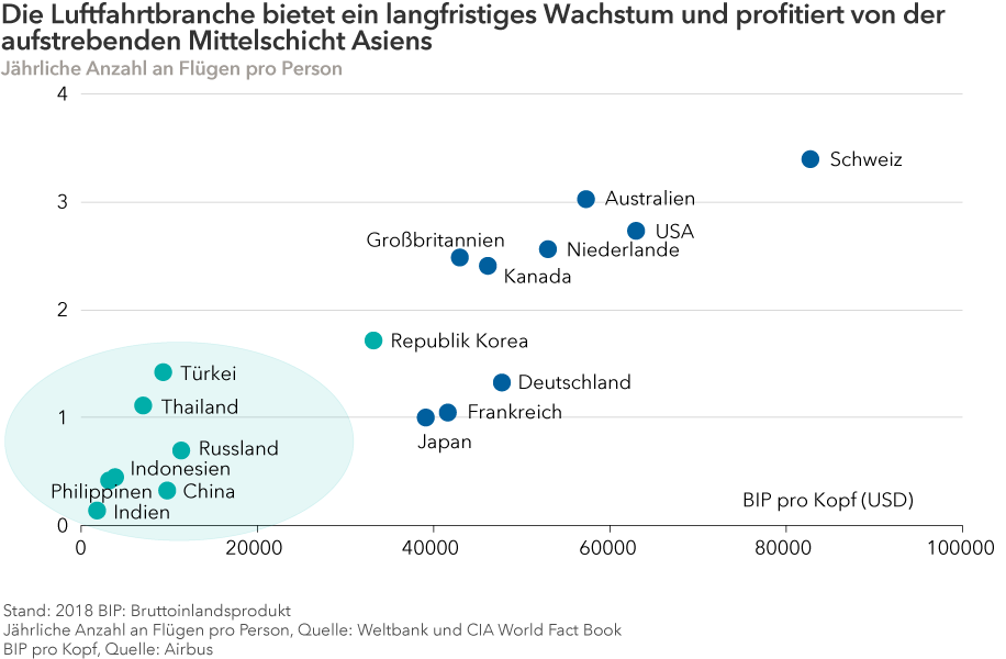 Eine Belebung der Reisenachfrage in Asien und anderen Teilen der Welt könnte auch einen starken Welleneffekt haben, der den Bedarf an einer Reihe von Gütern und Dienstleistungen schafft und das Stellenwachstum in einer Vielzahl von Branchen fördert, darunter Flugzeughersteller, Triebwerksbauer, Hotels, Casinos und Restaurants. Da es keine bedeutenden lokalen Anbieter zur Deckung dieses Bedarfs gibt, könnten multinationale Unternehmen wie Airbus und Boeing potenziell profitieren, da das Duopol für Verkehrsflugzeuge die Lücke füllen kann, wenn der weltweite Flugverkehr wieder an Fahrt aufnimmt.