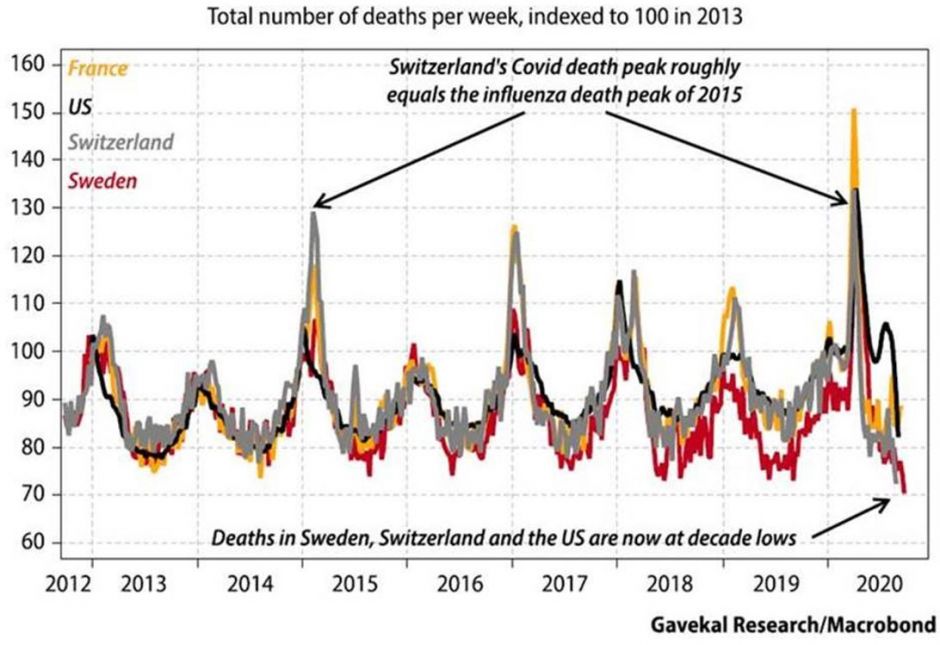 Die gegenwärtigen Lockdown-Maßnahmen wecken Sorgen über eine Konjunkturdelle und ein erneutes Abrutschen in eine Rezession. Tatsächlich deuten Hochfrequenzdaten wie Retail-Umsätze, Restaurantreservierungen und Mobilitätsindikatoren auf eine Abschwächung im vierten Quartal hin. Allerdings dürften komplette Lockdowns wohl vermieden werden: Inzwischen scheint sich bei den Regierungen in Europa und den USA die Erkenntnis durchzusetzen, dass scharfe Abriegelungen nicht nur im Hinblick auf die Wirtschaft, sondern auch auf das menschliche Allgemeinbefinden mehr schaden als nützen. Erfreulicherweise haben sich die wöchentlichen Mortalitätsraten in vielen Ländern seit dem Frühjahr zurückgebildet und liegen in einigen Ländern gar unter den Durchschnittswerten einer „normalen“ Grippesaison (siehe Grafik).