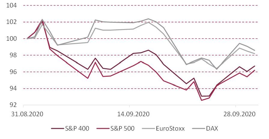 Abbildung 1: Wertentwicklung europäischer und US-Indizes im September 2020