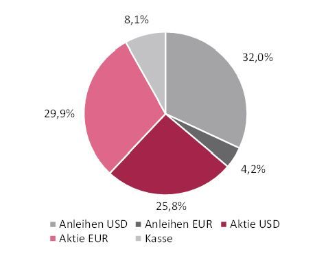 Aufgrund der ausgewogenen Aktienquote ist der Fonds aktuell sowohl für weiter steigende Aktienkurse als auch für plötzlich auftretende Korrekturen gewappnet. Bei Letzteren kann die Aktienquote schnell wieder reduziert werden, um größere Verluste zu vermeiden. Entspannt sich die Situation weiterhin, bietet die aktuelle Aktienquote bereits Möglichkeiten zur Partizipation, die nach und nach weiter ausgebaut werden kann.