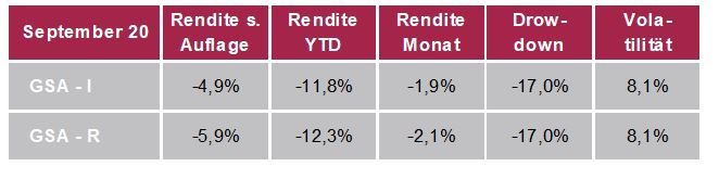 Bedingt durch die negative Richtung der europäischen und insbesondere auch der amerikanischen Unternehmen, beendete der Fonds den Monat September ebenfalls im Minus. Und auch die Anleihen mussten in diesem Monat geringfügige Verluste verbuchen. Das Monatsergebnis beläuft sich insgesamt auf -1,9%, wohingegen die Aktien mit -1,5% und die Anleihen mit -0,4% dazu beigetragen haben.