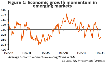 On aggregate, emerging markets still exhibit significant weakness. Our own EM growth momentum indicator is still in negative territory and remains close to a three-year low (see Figure 1). This weak starting point for the year means that our cautious growth forecast for 2019 of 4.6% will not need to be revised upwards anytime soon. Nevertheless, we see the outlook for EM growth improving somewhat. This is for two reasons: the reduced likelihood of more Fed rate hikes in the coming quarters, and the Chinese authorities’ recent announcements of increased policy stimulus.