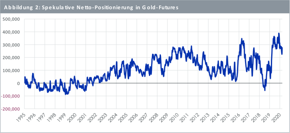 Um nach der Positionierung auf den Gold-Futures-Märkten zu urteilen, ist die Stimmung im Hinblick auf Gold von ihren Allzeithochs abgerückt (Abbildung 2)